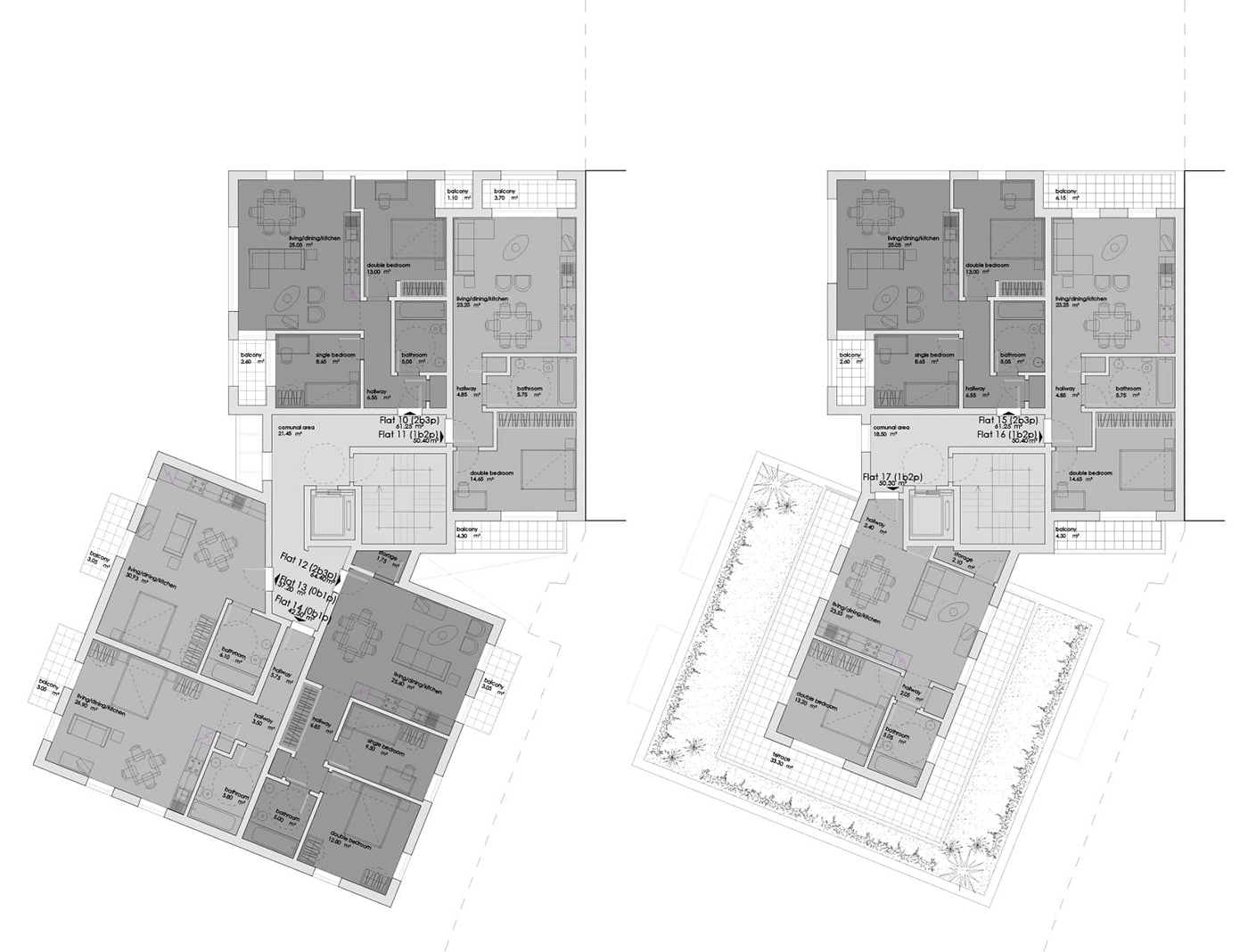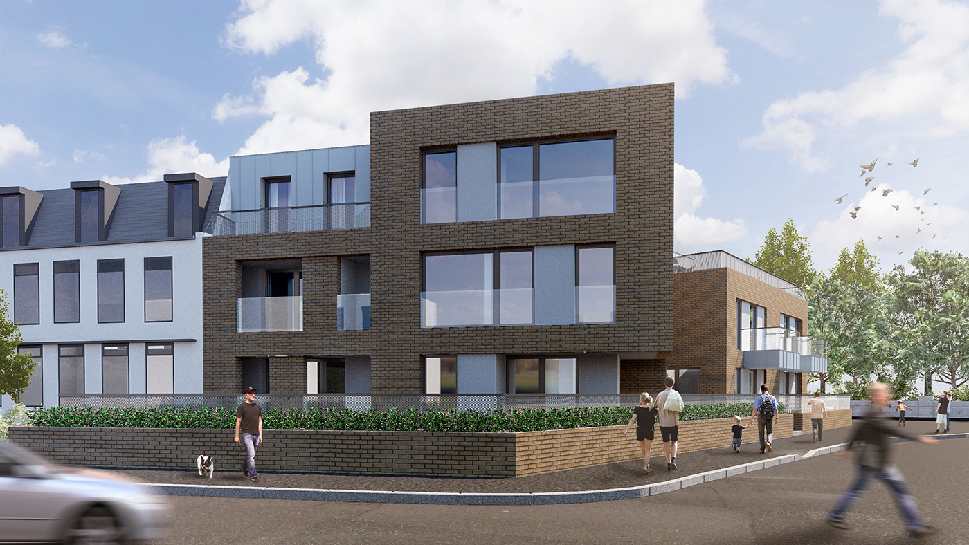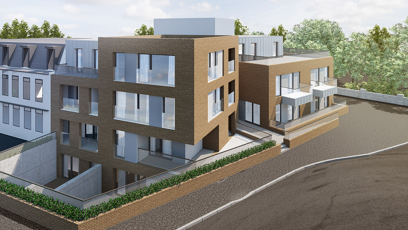 Planning permission has been granted for a large multi-unit apartment scheme creating 17 new build flats on an irregular site.