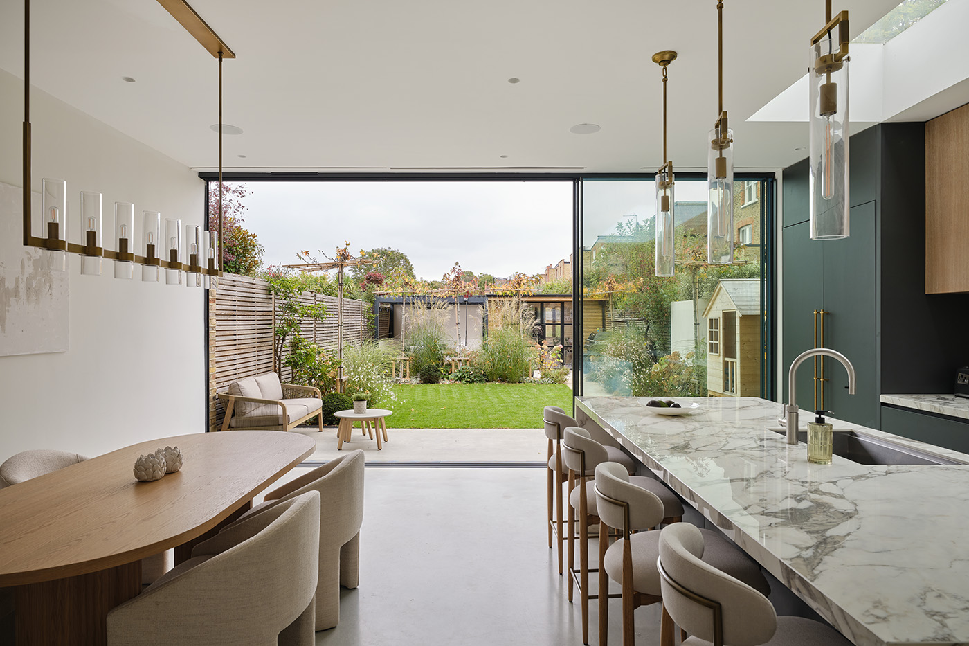 Set among a collection of elegant period homes and lush gardens in Putney, this finely proportioned semi-detached house has been sensitively reimagined for contemporary living. The brief called for a refined, light-filled interior defined by clarity, craftsmanship, and moments of playfulness. Polished concrete floors, a meticulously handcrafted kitchen, and bespoke glazing articulate a language of precision and restraint, while bringing warmth and tactility to the space.